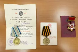 «Мне очень хотелось, чтобы реликвии моего отца Алексея Яковлевича Евтеева хранились именно в Музее Победы. Среди его наград – Орден Отечественной войны I степени, медаль «За оборону Кавказа» и медаль «За Победу над Германией в Великой Отечественной войне 1941-1945 годах», – поделилась Лидия Евтеева.