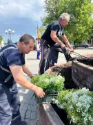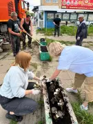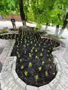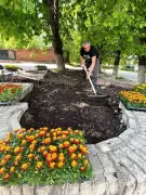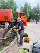 Завезена удобренная иловая почва, оформляются городские цветники. Клумбовое разноцветие представлено такими видами, как бархатцы и гвоздики, петунии тайдел, алиссумы гигантский и бордюрный, а также анютины глазки и бегонии. Рассада для городских клумб подготовлена в одном из районных питомников.