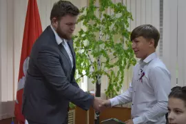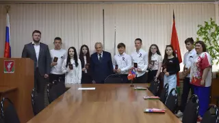 13 июня в зале администрации Гусь-Хрустального района состоялась торжественная церемония вручения паспортов граждан Российской Федерации, приуроченная ко Дню России. Юношам и девушкам, достигшим четырнадцатилетнего возраста, их первые главные документы вручили глава Гусь-Хрустального района Василий Панин и специалист по вопросам миграции межмуниципального отдела г.Гусь-Хрустальный Юлия Холодкова. Почетными гостями мероприятия стали восемь юношей и девушек, достигших успехов в учебе, спорте и творчестве.