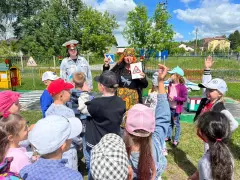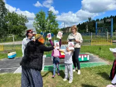 Открытие автогородка сопровождалось торжественной церемонией. Ребята старших возрастных групп вместе с Профессором Светофориусом научили Бабу Ягу соблюдать правила дорожного движения.
