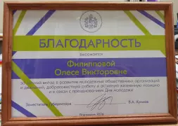 Олеся Филиппова награждена благодарностью за личный вклад в развитие молодежных организаций и движений