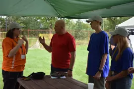 Руководитель слета Эдуард Коршунов рассказал о насыщенной программе шестидневного мероприятия, которая включает в себя тематические лекции и мастер-классы, спортивные состязания, занятия по допризывной подготовке, просмотр театральных постановок и художественных фильмов, экскурсии, встречи с интересными людьми.