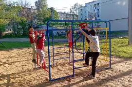 Благодаря инициативе Молодежного центра «Эко город» и неравнодушных жителей города, дворы Гусь-Хрустального украшают современные гимнастические комплексы.