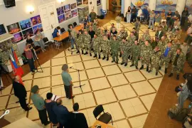 Торжественные проводы добровольцев прошли в Доме культуры молодёжи столицы региона. В них участвовали представители областного военкомата, Правительства и Законодательного Собрания Владимирской области, городской администрации, активисты общественных и ветеранских организаций, родные и близкие бойцов.