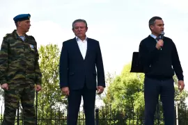 На площади у фонтана в Гусь-Хрустальном по доброй традиции состоялся концерт с символичным названием «Никто, кроме нас!» - в честь «крылатой пехоты». С приветственным словом к воинам-десантникам обратился первый заместитель главы администрации города Александр Ширков, назвавший школу Воздушно-десантных войск школой мужества и достойных защитников Отечества. Слова поздравлений и добрых пожеланий главным героям праздника адресовали председатель Совета народных депутатов Николай Мокров и депутат Законодательного Собрания Владимирской области Николай Балахин.