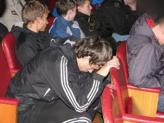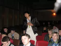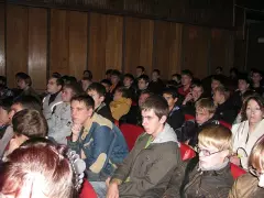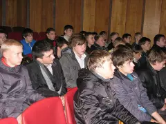 Выступление начальника отдела ВКВО продолжилось просмотром видео фильма о работе и жизни московского военного института радиоэлектроники космических войск, из которого они почерпнули мысли о важности службы для нашей страны как независимой части целого мира, о быту солдат, о том что им предстоит пройти, что бы стать настоящим мужчиной.