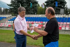 Затем на стадионе «Центральный» чествовали ветеранов футбола. Вручил благодарственные письма футболистам, которые всю свою жизнь посвятили спорту, и сейчас являются примером для более юных поколений.