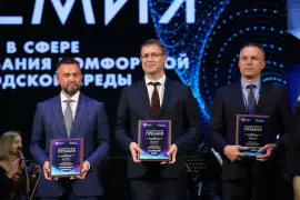 Почётную награду из рук Министра строительства и жилищно-коммунального хозяйства РФ Ирека Файзуллина получил заместитель Губернатора Сергей Волков. Глава Минстроя поблагодарил участников и партнёров премии за проделанную работу и вклад в развитие городской среды.