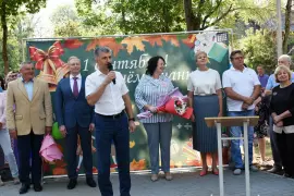 Торжественности событию добавили поднятие Государственного флага и прозвучавший Гимн, который в унисон исполнили школьники и педагоги.