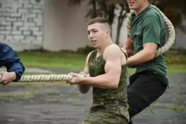 Второй день стал решающим, так как по его итогам определялись победители спартакиады. Главным испытанием стала военно-спортивная эстафета «Один за всех и все за одного», в которой участникам предстояло преодолеть полосу препятствий, пробежать в противогазе, метнуть гранату, перенести «раненого» и разобрать-собрать автомат АК. Эти испытания проверяли физическую выносливость, скорость и умение быстро принимать решения в сложных ситуациях. Кроме того, юноши попробовали силы в командных соревнованиях по перетягиванию каната, что добавило духа соперничества и командного единства.