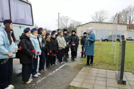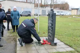 Полицейские, ветераны, общественники и юные инспектора дорожного движения школы №7 почтили память погибших сотрудников минутой молчания и возложили цветы к подножию мемориала.