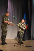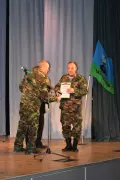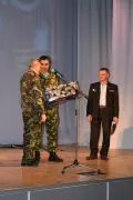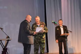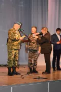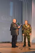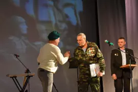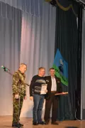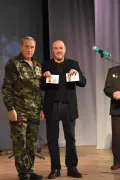 Председатель КГГО ВБД «Патриоты Отчизны» и организатор мероприятия Валерий Калингер передал главе администрации Гусь-Хрустального района Алексею Кабенкину благодарность за плодотворное сотрудничество и большой вклад в патриотическое воспитание подрастающего поколения, за участие и проведение совместных социально-значимых мероприятий с ветеранами боевых действий, высокую гражданскую ответственность.