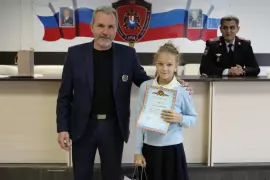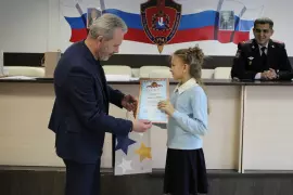 Церемония награждения состоялась в День сотрудников органов внутренних дел. В торжественной обстановке заместитель председателя при МО МВД России «Гусь-Хрустальный» Дмитрий Баранов вручил благодарности и памятные сувениры юным конкурсантам - Алексеевой Милане и Куликову Максиму, пожелав больших успехов и новых творческих достижений.