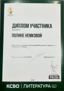 Гусь-Хрустальный район в номинации «Литература» достойно представила Полина Немкова. Она прочитала отрывок из трогательного авторского рассказа о своей семье, в которой по контракту на специальную военную операцию ушли служить три близких человека: брат, папа и дядя. В настоящее время Полина является студенткой третьего курса государственного университета кафедры истории, археологии и краеведения. На фестивале девушку поддерживала мама - Лидия Немкова, волонтёр, представитель района в региональном комитете семей воинов Отечества.