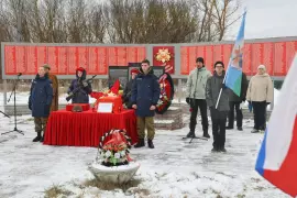 После отпевания в Свято-Никольском храме в селе Бутылицы, у мемориала погибшим в годы Великой Отечественной войны прошел торжественно-траурный митинг, в котором приняли участие местные жители, школьники, поисковики, представители Следственного комитета и учебно-методического центра «Авангард».
