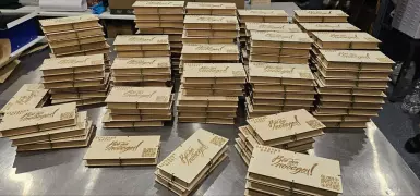 Центр защиты материнства с благотворительным приютом "Мамин домик" в помощь мамам с детьми в преддверии Нового года сделал партию шоколада для бойцов. На плитках напечатано: "Всё для Победы".