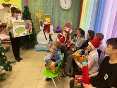 В рамках акции «Полицейский Дед Мороз» сотрудники Межмуниципального отдела МВД России «Гусь-Хрустальный» в сопровождении Деда Мороза - представителя Общественного совета при МО МВД России Игоря Новикова поздравили воспитанников подшефного социального реабилитационного центра, расположенного в поселке Уршельский.