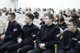 С приветственным словом к ребятам обратились председатель Совета ветеранов и сотрудники отделения по работе с личным составом. Гости рассказали студентам о функциях и задачах полиции, в чем заключается деятельность и специфика тех или иных служб, о порядке и требованиях, предъявляемых к желающим поступить в вузы МВД России и продолжить карьеру в органах внутренних дел. Общаясь со студентами, полицейские подчеркнули, что для молодежи в полиции всегда открыты двери. Для желающих связать свою судьбу со службой в органах внутренних дел есть хорошие перспективы. Сотрудники сообщили ребятам актуальную информацию об имеющихся вакансиях и пригласили студентов на службу в полицию, отметив, что при отборе кандидатов особое внимание уделяется их уровню образования, морально-деловым качествам и состоянию здоровья.