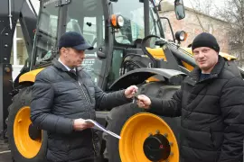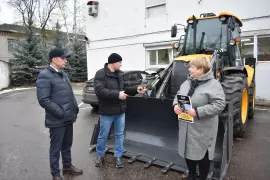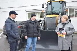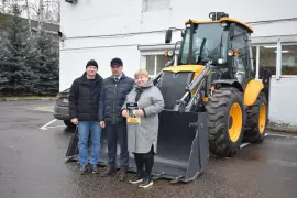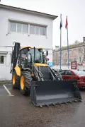 В конце января в Гусь-Хрустальном районе состоялась торжественная церемония передачи ключей и документов от нового экскаватора-погрузчика главе администрации поселка Иванищи Ирине Демьяновой и водителю спецтехники Алексею Фролову. Мероприятие прошло у здания администрации района.