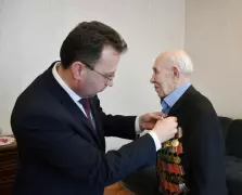 Глава города Алексей Соколов вместе с Дмитрием Лызловым, первым заместителем Губернатора Владимирской области, руководителем Администрации Губернатора Владимирской области, вручил Николаю Фёдоровичу Ушакову памятную медаль в честь 80-летия Победы в Великой Отечественной войне. Также были переданы поздравления от Губернатора Владимирской области Александра Авдеева.