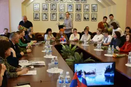 Трогательным моментом стало поздравление всех присутствовавших женщин с Международным женским днем, каждой был вручен букет тюльпанов.