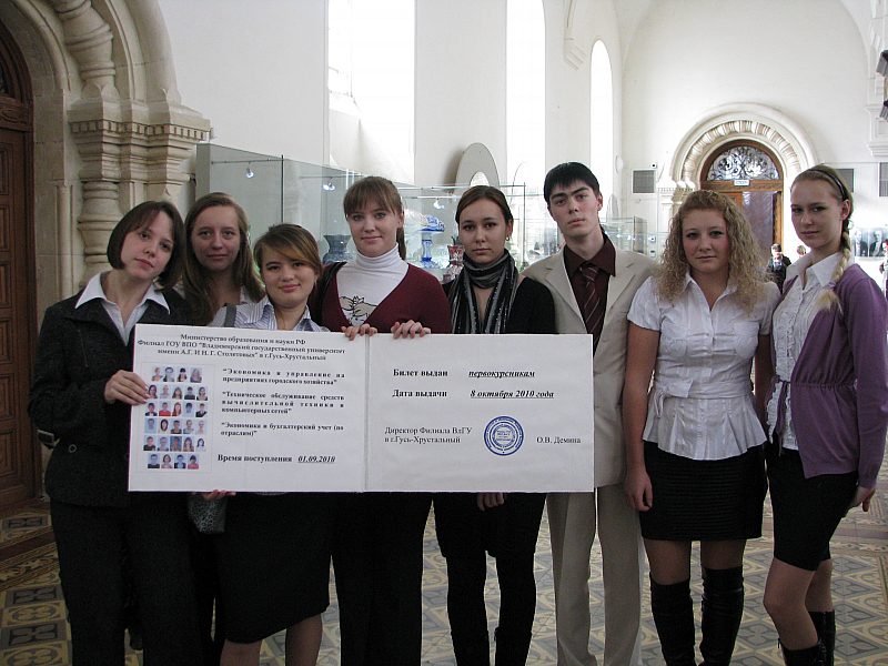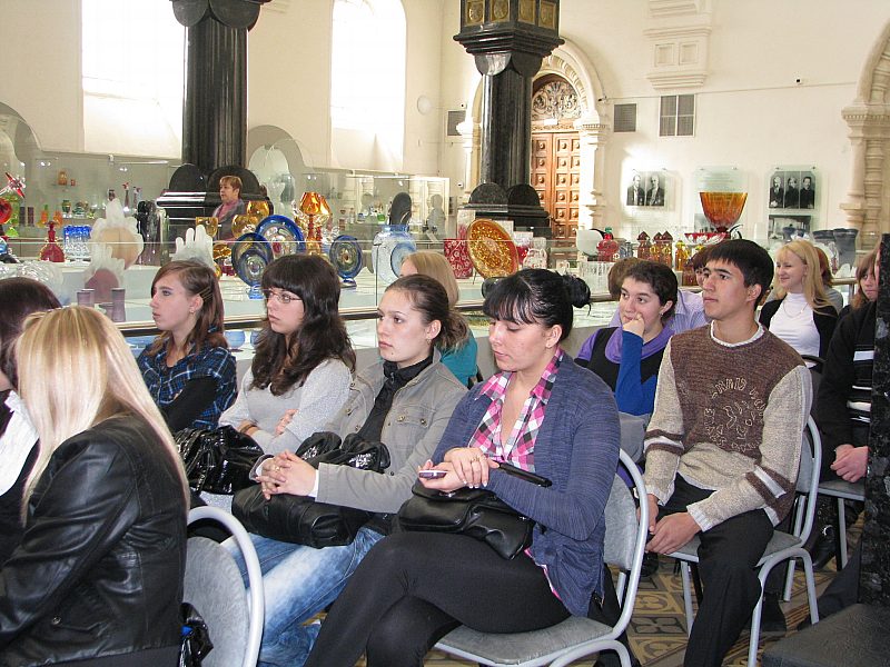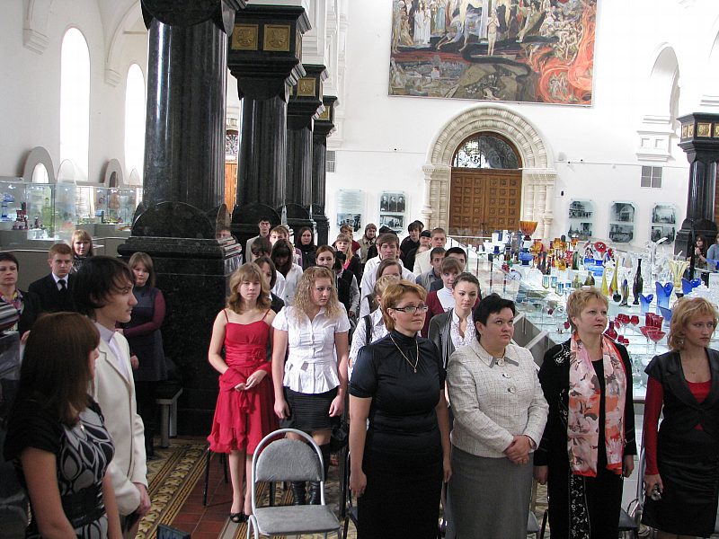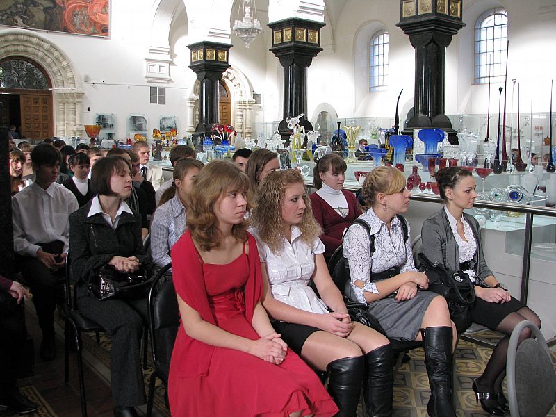 Место проведения церемонии посвящения в студенты выбрано не случайно. В музее хрусталя им. Мальцовых – каждый экспонат «дышит» историей. Здесь собрана уникальная коллекция творений, созданных трудолюбивыми, «золотыми» руками наших прадедов, дедов, отцов. И, именно им, будущим экономистам, химикам, менеджерам, юристам преумножать их славные дела на родной гусевской земле. В Музее Хрусталя молодые люди почувствовали гордость не только за ВУЗ, где им предстоит учиться, но и за родной город, который на протяжении двух с половиной веков был и остается центром отечественного стеклоделия.