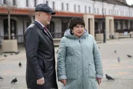 Глава Юрьев-Польского района Анатолий Трофимов показал Ольге Хохловой обновленную пешеходную зону в центре города и рассказал о планах дальнейшего благоустройства территории.
