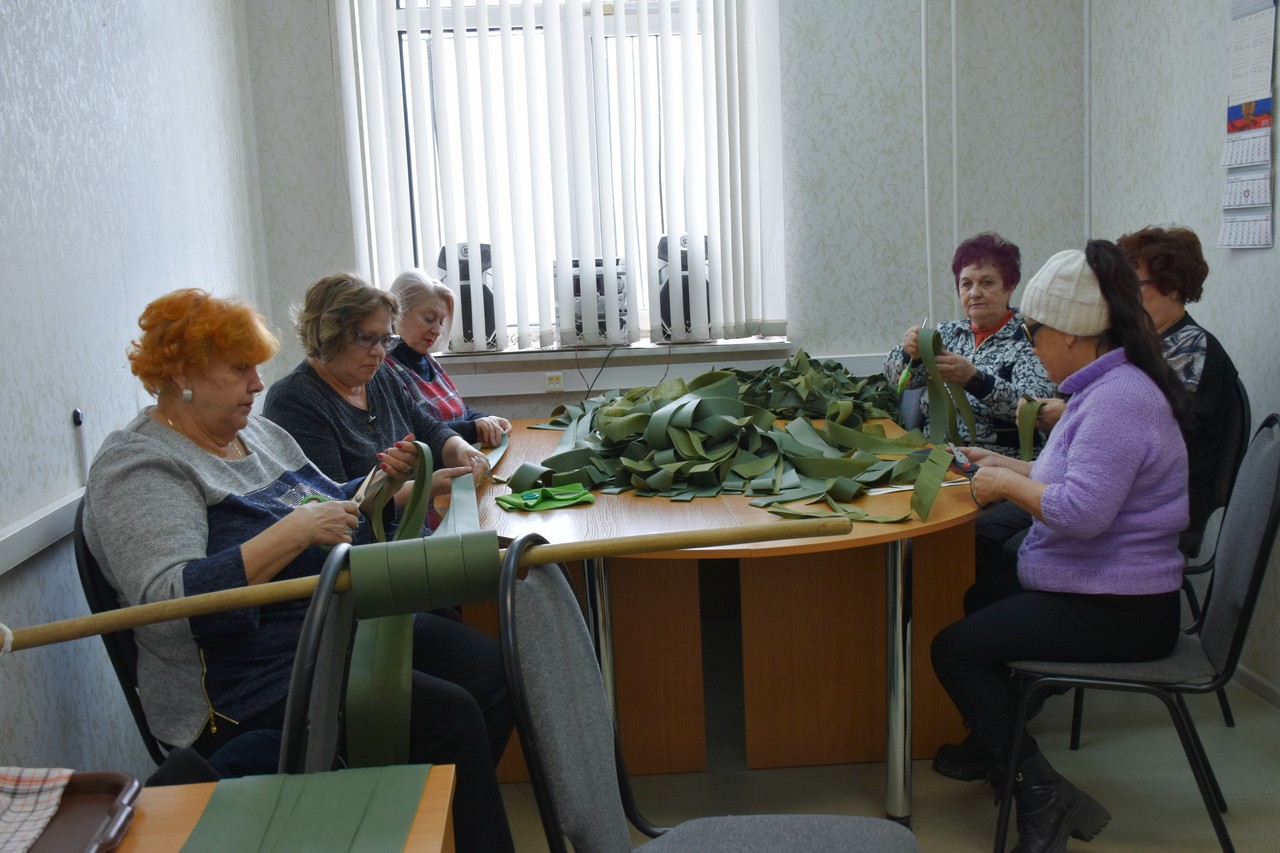 Волонтеры Центра активно участвуют в социально значимой деятельности, в том числе в подготовке лент для плетения маскировочных сетей.