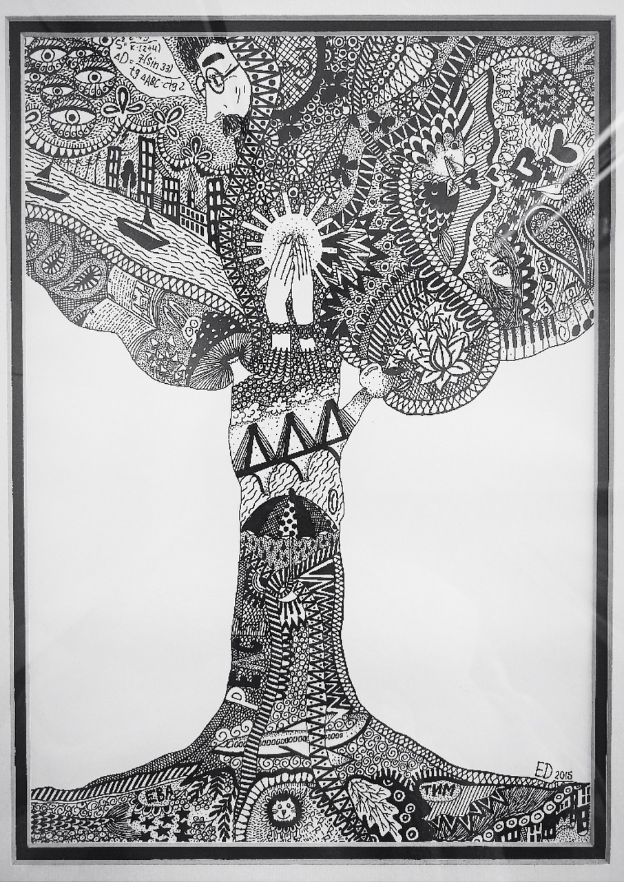 Дунаева Екатерина Геннадьевна, старший воспитатель МБДОУ детский сад №42 п.Анопино "Дерево жизни", техника Графика (гелевая ручка) заняла 2 место.