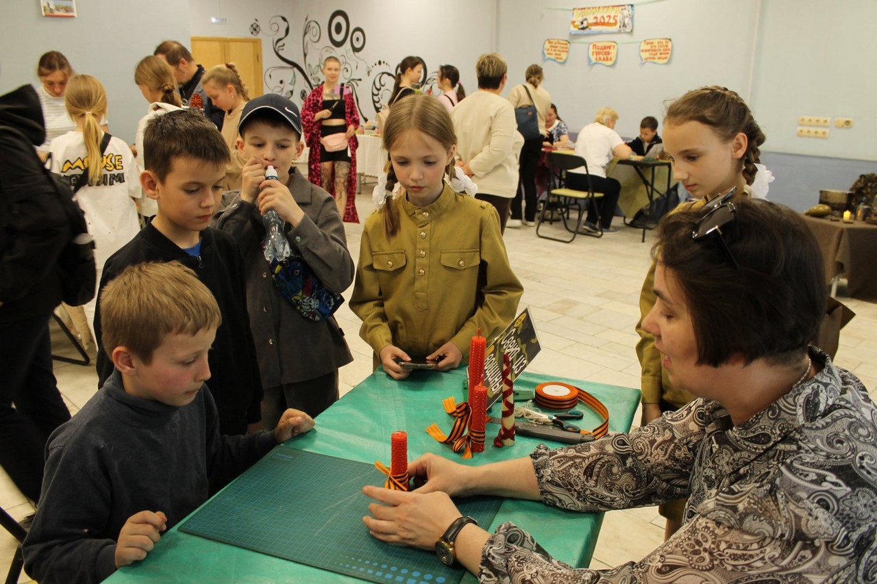 Работали мастер-классы по изготовлению украшений из георгиевской ленточки, свечей из вощины.