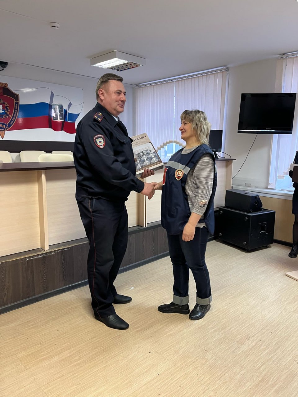 Продолжилось мероприятие вручением ценных подарков добровольцам за активную гражданскую позицию и значимый вклад в дело охраны правопорядка на территории города Гусь-Хрустальный и района.