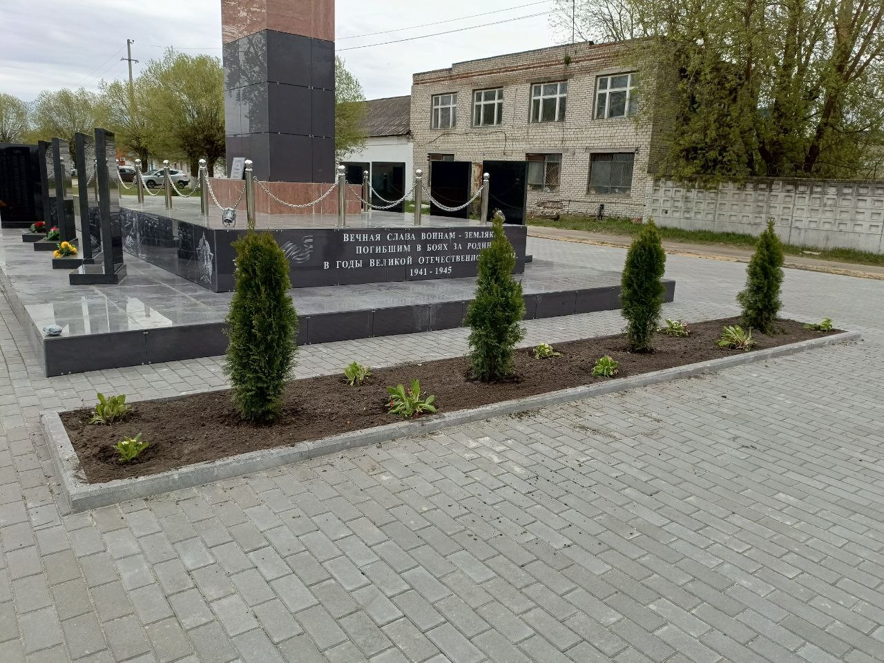 В поселке Великодворский завершены работы по реконструкции памятника павшим воинам. Здесь уже почти окончены работы по озеленению территории, что делает место еще более уютным и достойным.