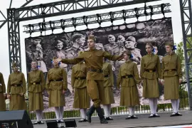 На площади была представлена экспозиция снаряжения и вооружения времён Великой Отечественной войны, подготовленная участниками ВИК «Гардарика».