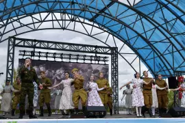 На площади у фонтана состоялся праздничный концерт «Салют Победы», в котором приняли участие солисты и творческие коллективы города.