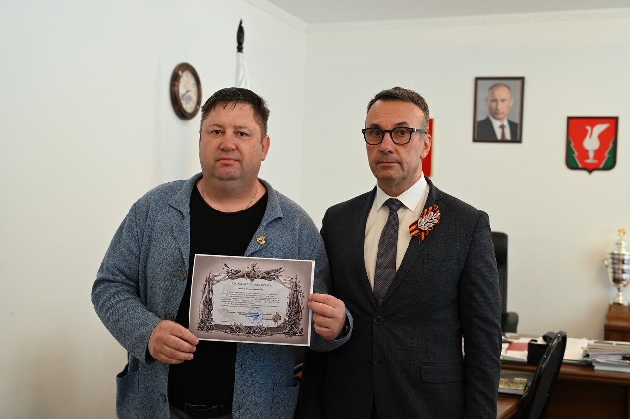 В торжественной обстановке в Гусь-Хрустальном районе глава администрации Алексей Кабенкин вручил благодарственные письма от командования и всего личного состава 15 гвардейского Шавлинского ордена Ленина Краснознаменного полка нашим землякам — Алексею Сазонову и Александру Крылову. Эти мужчины активно помогают в сборе гуманитарной помощи и закупают необходимые вещи для бойцов, находящихся в зоне специальной военной операции.