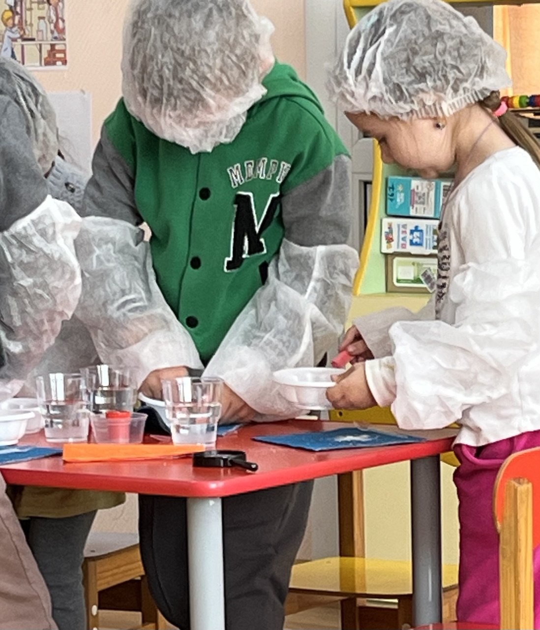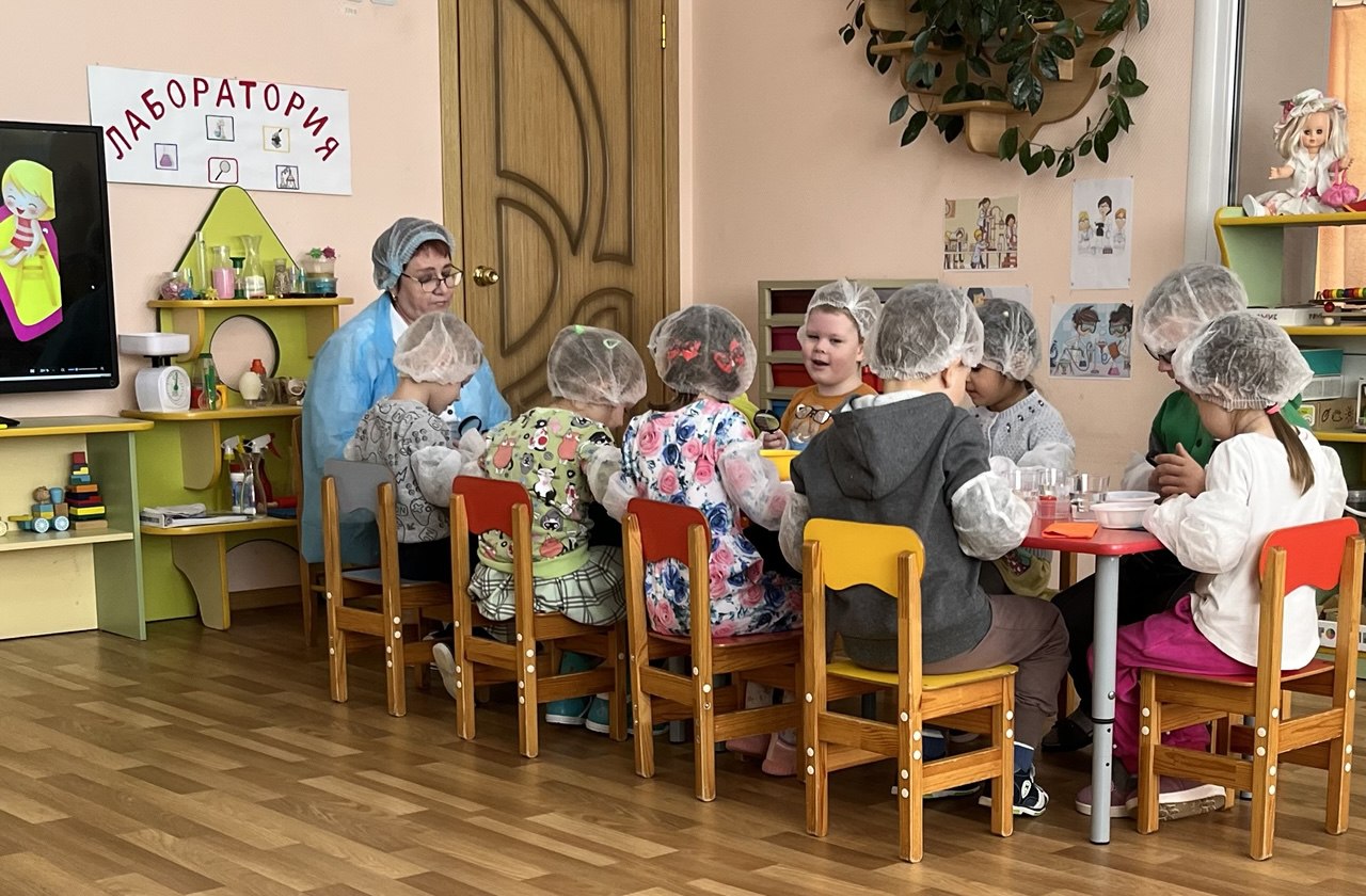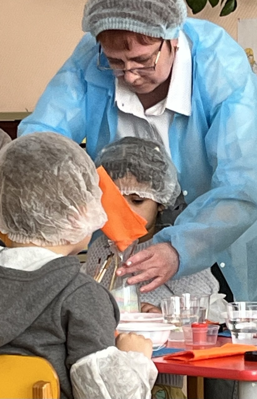 Затем педагоги вместе с детьми средней группы под руководством воспитателя Татьяны Кокоревой попали в настоящую лабораторию. Здесь ребята стали участниками опытно-экспериментальной деятельности «Эта удивительная соль». Не только дети, но и взрослые, узнали много нового о свойствах такого знакомого и необходимого всем вещества, как соль.