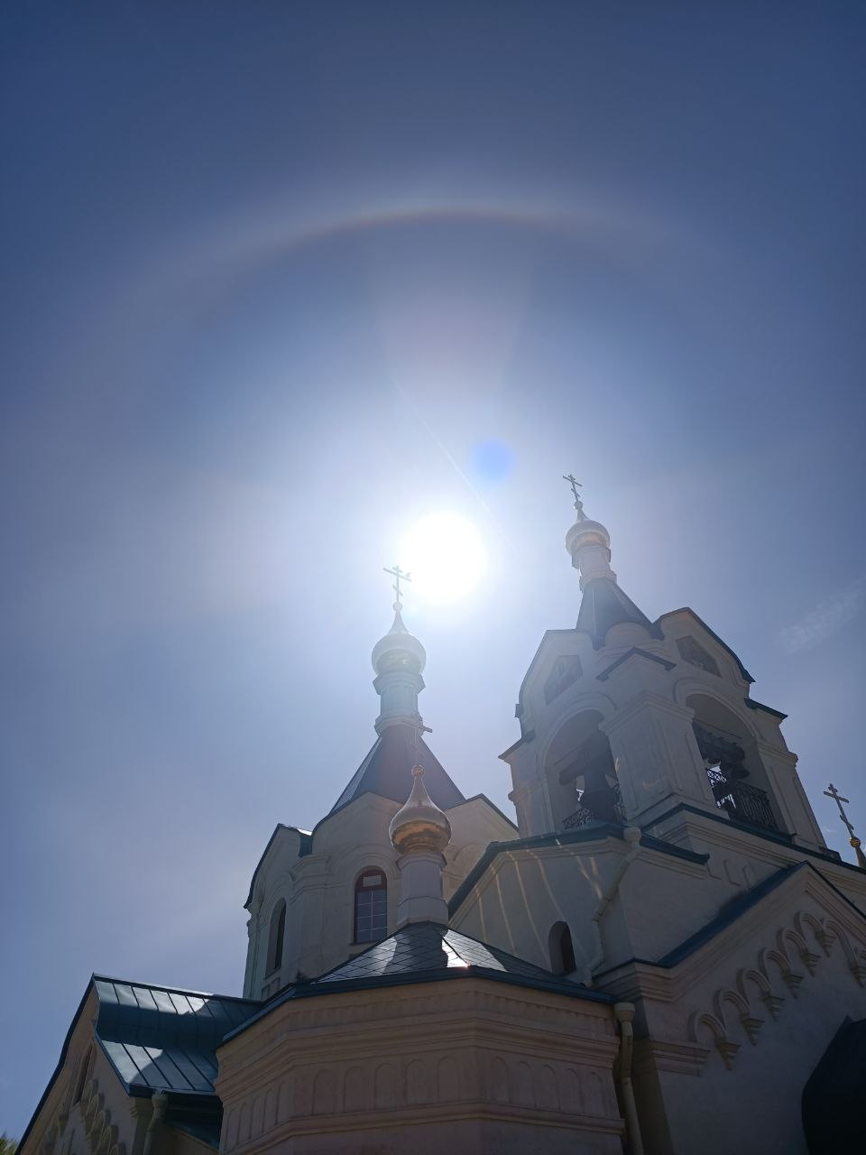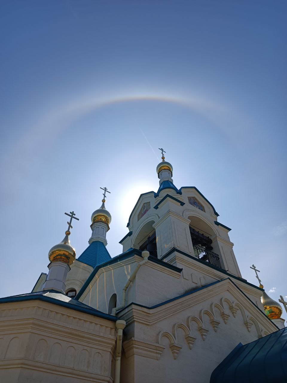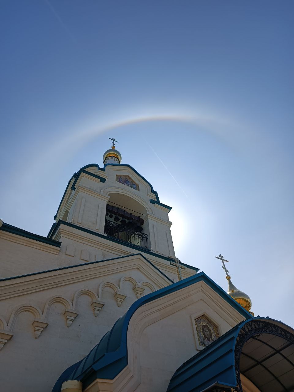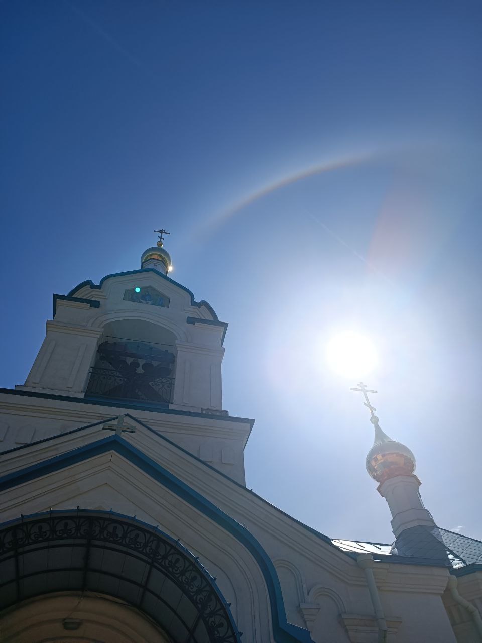 Радуга-гало в престольный праздник над храмом Николая Чудотворца в Гусь-Хрустальном