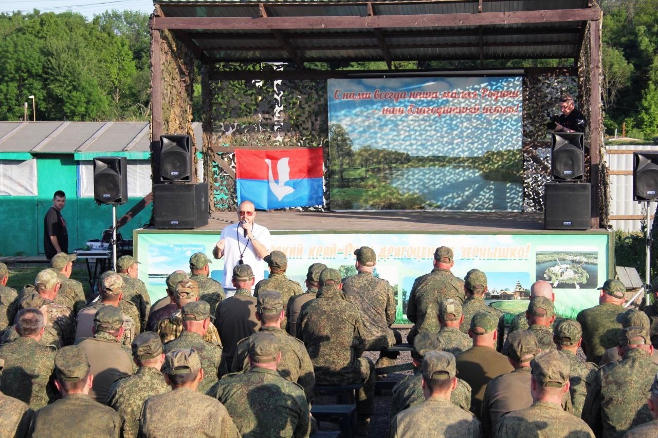 Концерт состоялся накануне Дня российского предпринимательства и стал подарком бойцам от представителей малого бизнеса города Гусь-Хрустального. Артист исполнил как свои известные хиты, так и композиции военной тематики, ставшие классикой жанра.