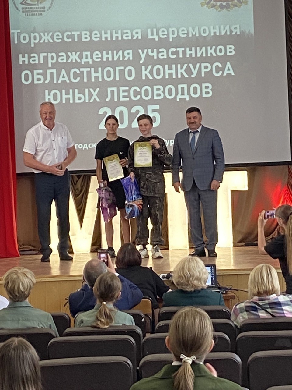 На торжественном закрытии областного конкурса юных лесоводов были награждены участники, победители и призёры конкурса. Полина и Александр получили дипломы участников областного конкурса юных лесоводов и памятные подарки от директора ГКУ ВО «Курловское лесничество», Юрия Сучкова.