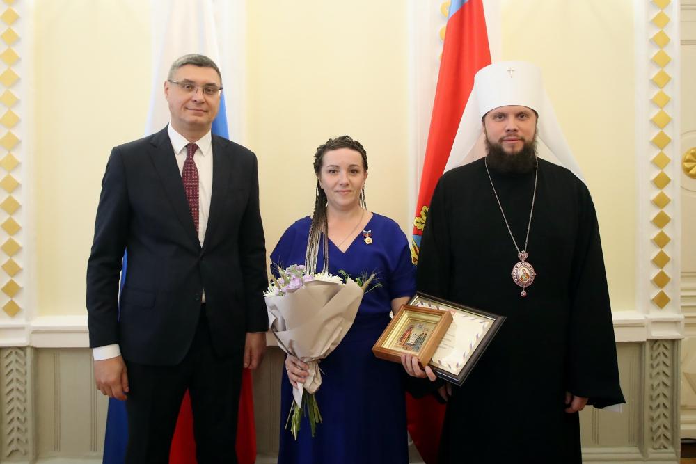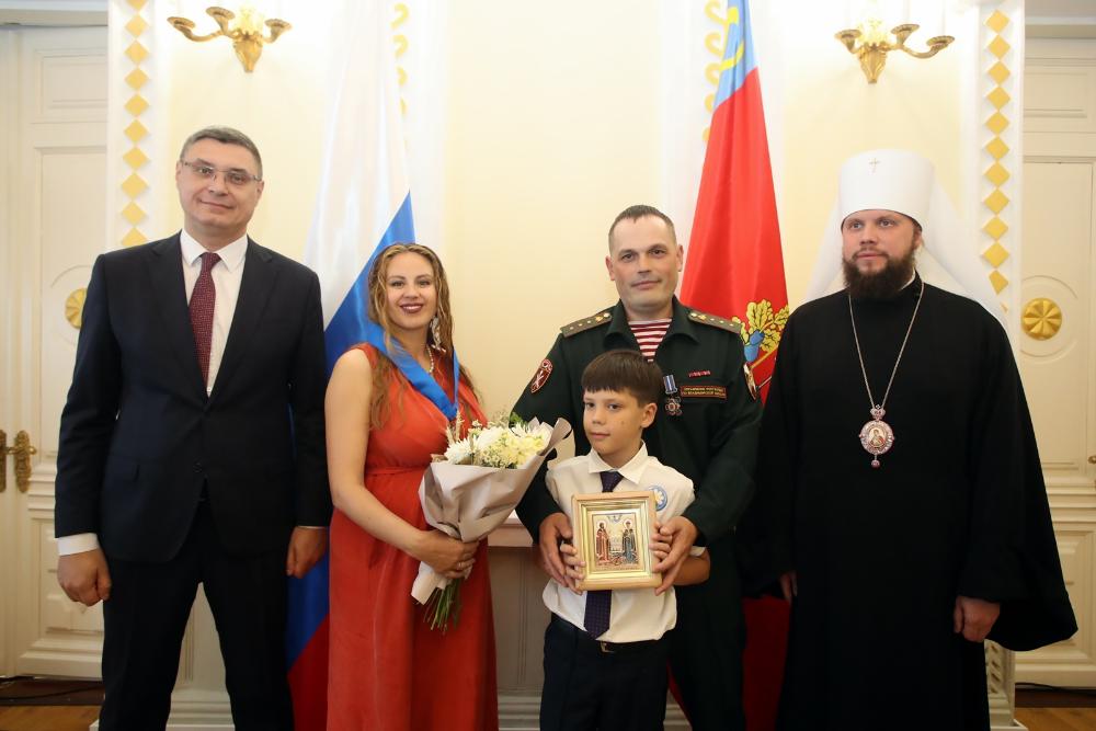 В числе награждённых почётным знаком – владимирцы Марина и Владимир Долговы. Они воспитывают пятерых сыновей, скоро родится шестой малыш. Мама с гордостью заявляет: все растут настоящими мужчинами, будущими защитниками Отчества, как их отец. Глава семейства – участник специальной военной операции, военнослужащий по контракту Управления Росгвардии, имеет награды.