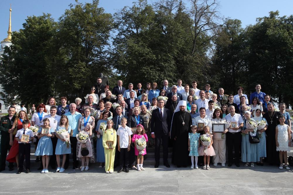 В ходе церемонии общественной наградой – медалью «За любовь и верность» – отмечены супруги, прожившие в совместном браке более 25 лет, получившие известность среди сограждан крепостью семейных устоев и воспитавшие детей достойными членами общества: Лира и Константин Васильевы (г.Владимир), Елена и Василий Гаранины (д.Труфаново Гусь-Хрустального района), Вера и Евгений Гранкины (г.Владимир), Ирина и Дмитрий Масловы (г.Владимир), Лариса и Евгений Ольшанские (г.Ковров), Марина и Алексей Петровы (с.Косинское Юрьев-Польского района), Ирина и Андрей Прибыльновы (г.Гусь-Хрустальный), Галина и Фёдор Сафоновы (г.Владимир), Наталья и Алексей Синицины (с.Илькино Меленковского муниципального округа).
