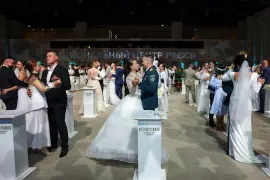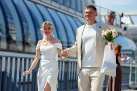 Свадьбы молодых начались с прогулок на яхтах по Москве-реке, после чего пары в сопровождении гостей прошли по живописной набережной к Национальному центру «Россия». В торжественной обстановке сотрудники ЗАГСа скрепили семейные союзы.