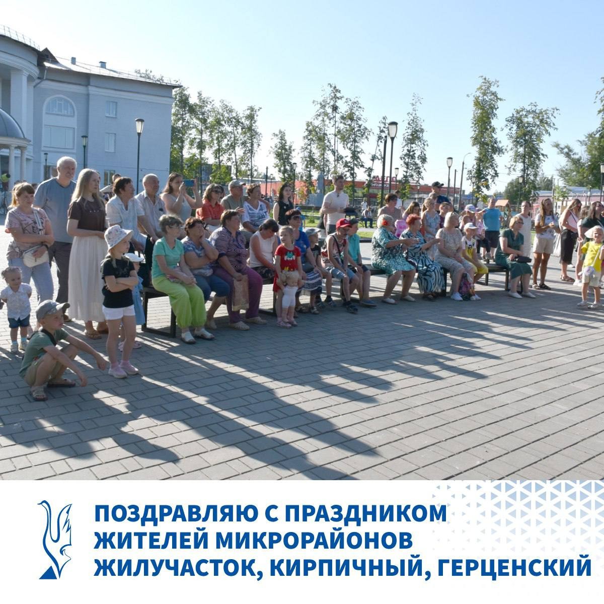 В минувшие выходные жители Эстакады, Жилучастка, Герценского и Кирпичного отметили Дни микрорайонов. В официальной части мероприятия принимали участие глава города Алексей Соколов и депутаты городского Совета Татьяна Кочнева, Степан Тарлаков, Елена Быкова и Игорь Трошков.