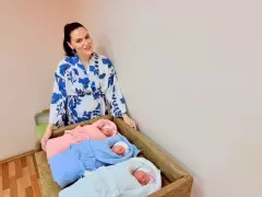 «Сначала родились девочки-близняшки, Анечка и София, потом наш богатырь – Миша весом 2850. Двое из троих детей родились в плодном пузыре. В народе говорят - «родились в рубашке». Эта примета говорит о том, что детки должны быть очень счастливы».