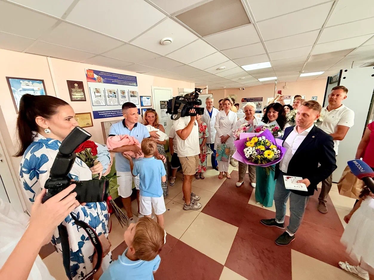 Поздравить семью Микшаковых с таким чудесным событием приехали высокие гости: вице-губернатор Владимир Куимов, исполняющая обязанности министра здравоохранения области Тамара Томаева, а также представители министерства социальной защиты и администрации города Гусь-Хрустального.