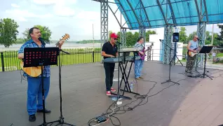 Праздник завершился на позитивной ноте. Настроение публике поднял ВИА «Лазурит», исполнивший хорошо знакомые песни, которые с удовольствием подпевали «голубые береты» в тельняшках.