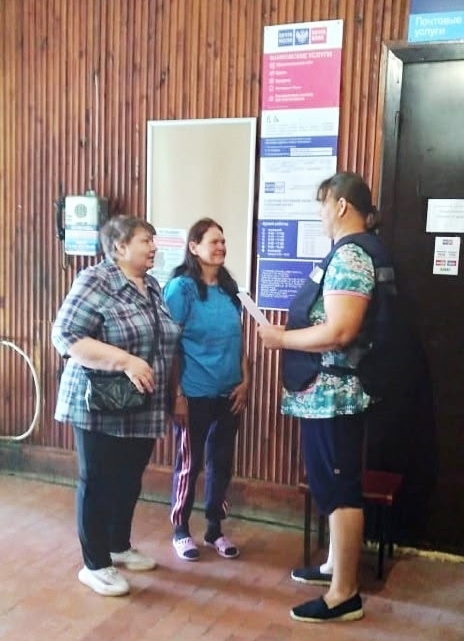 В начале августа в п. Гусевский были проведены встречи с населением, в ходе которых добровольцы Л. Гусева, И. Орлова, Г. Вольская и М. Фролова вручили гражданам информационные памятки и буклеты «Как не стать жертвой мошенников».