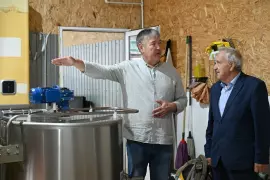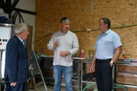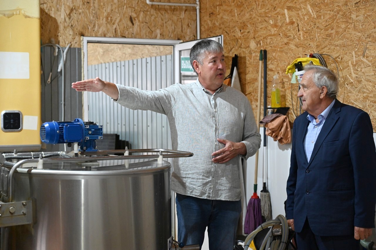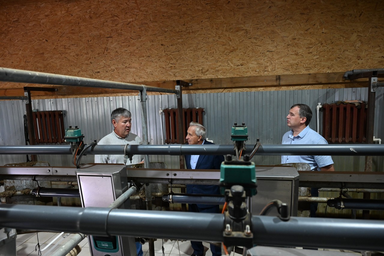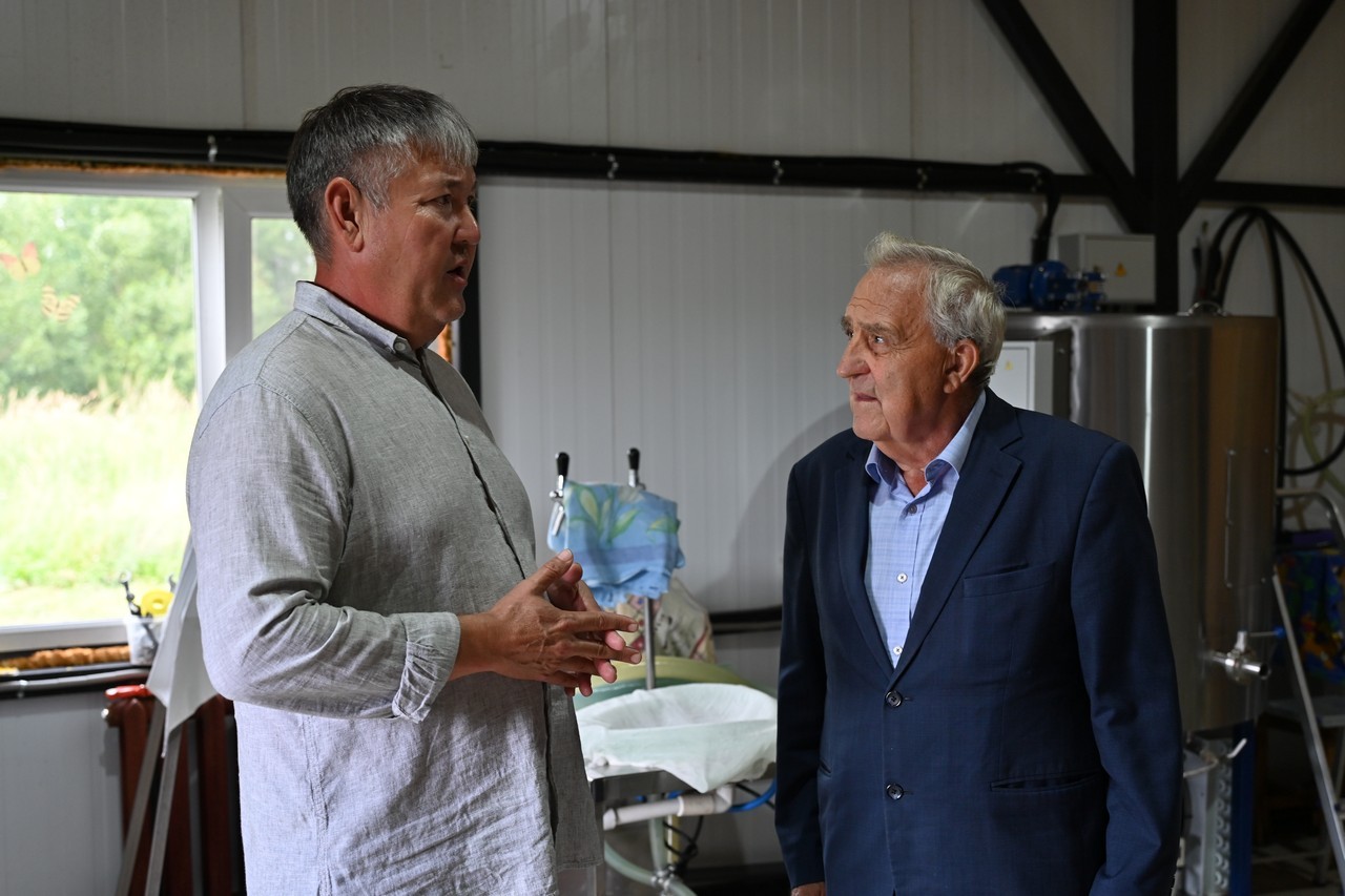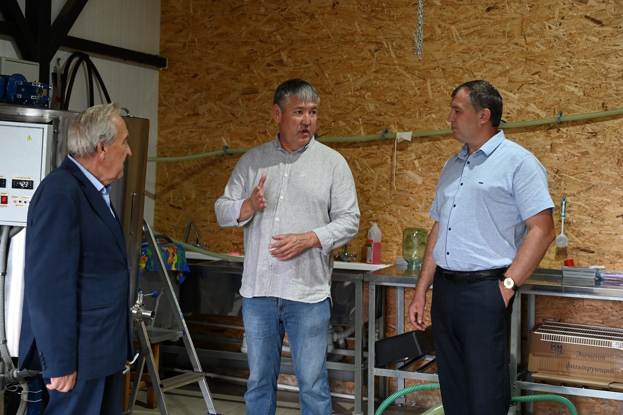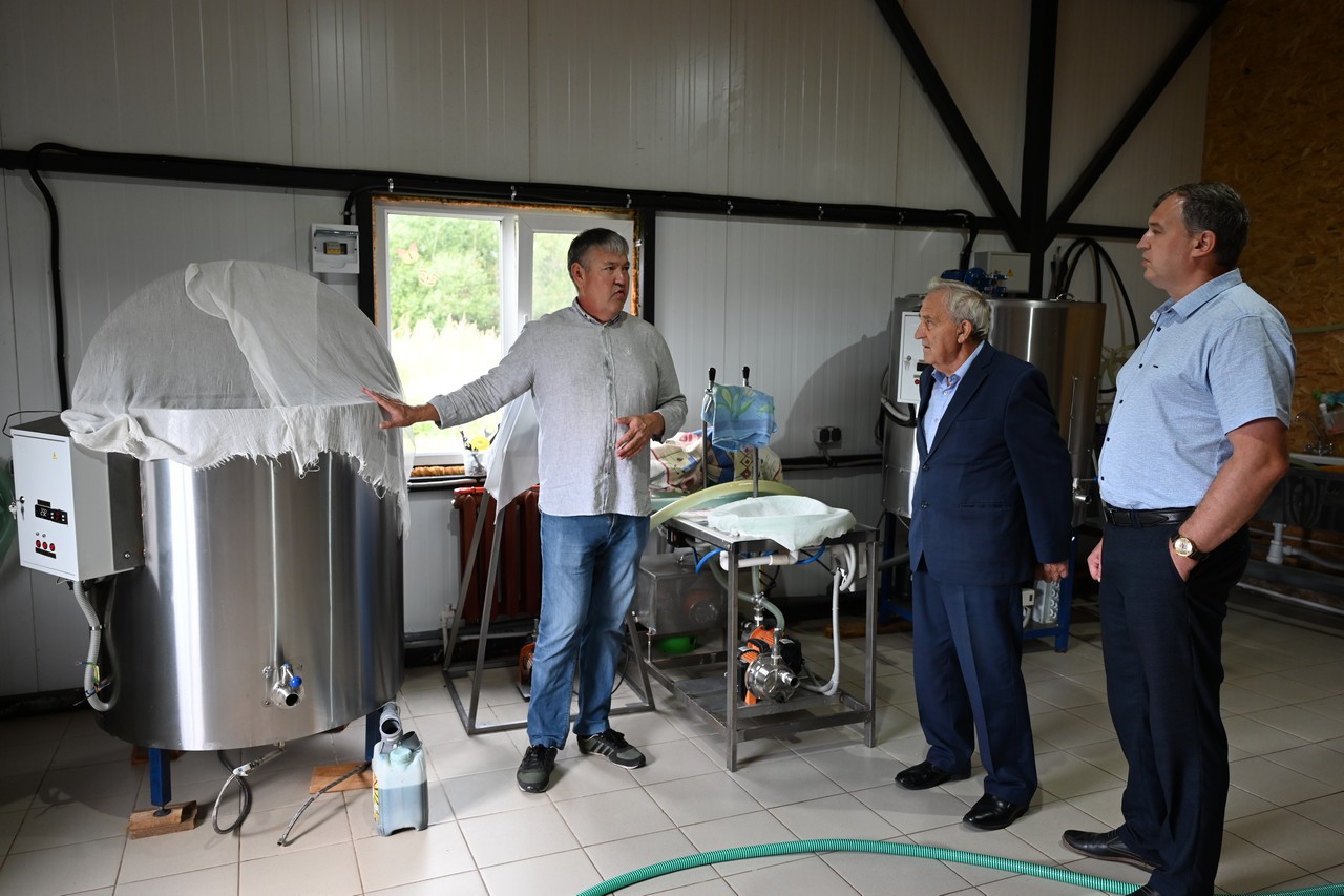 На территории Гусь-Хрустального района активно развивается сельскохозяйственное производство, возглавляемое предпринимателем Айтуганом Текегалиевым. Совсем скоро предприятие начнет выпуск брендированной молочной продукции под названием «Крестьянское подворье Мещеры». На днях с рабочим визитом территорию посетили глава Гусь-Хрустального района Василий Панин, начальник управления по вопросам развития промышленности, сельского хозяйства и предпринимательства Евгений Скворцов.