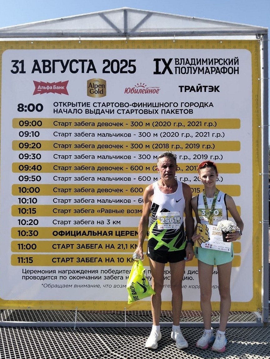 В воскресенье, 31 августа, в г. Владимир прошел 9-й полумарафон «Золотые ворота». В этом году на забег вышло огромное количество спортсменов из 145 городов России. Гусь-Хрустальный район с честью представили спортсмены МБУ ДО "СШ "Мещера": Веселкина Анастасия и Бармин Федор. Они продемонстрировали отличные результаты и настоящую спортивную волю, что подтверждает высокий уровень подготовки атлетов нашего района.