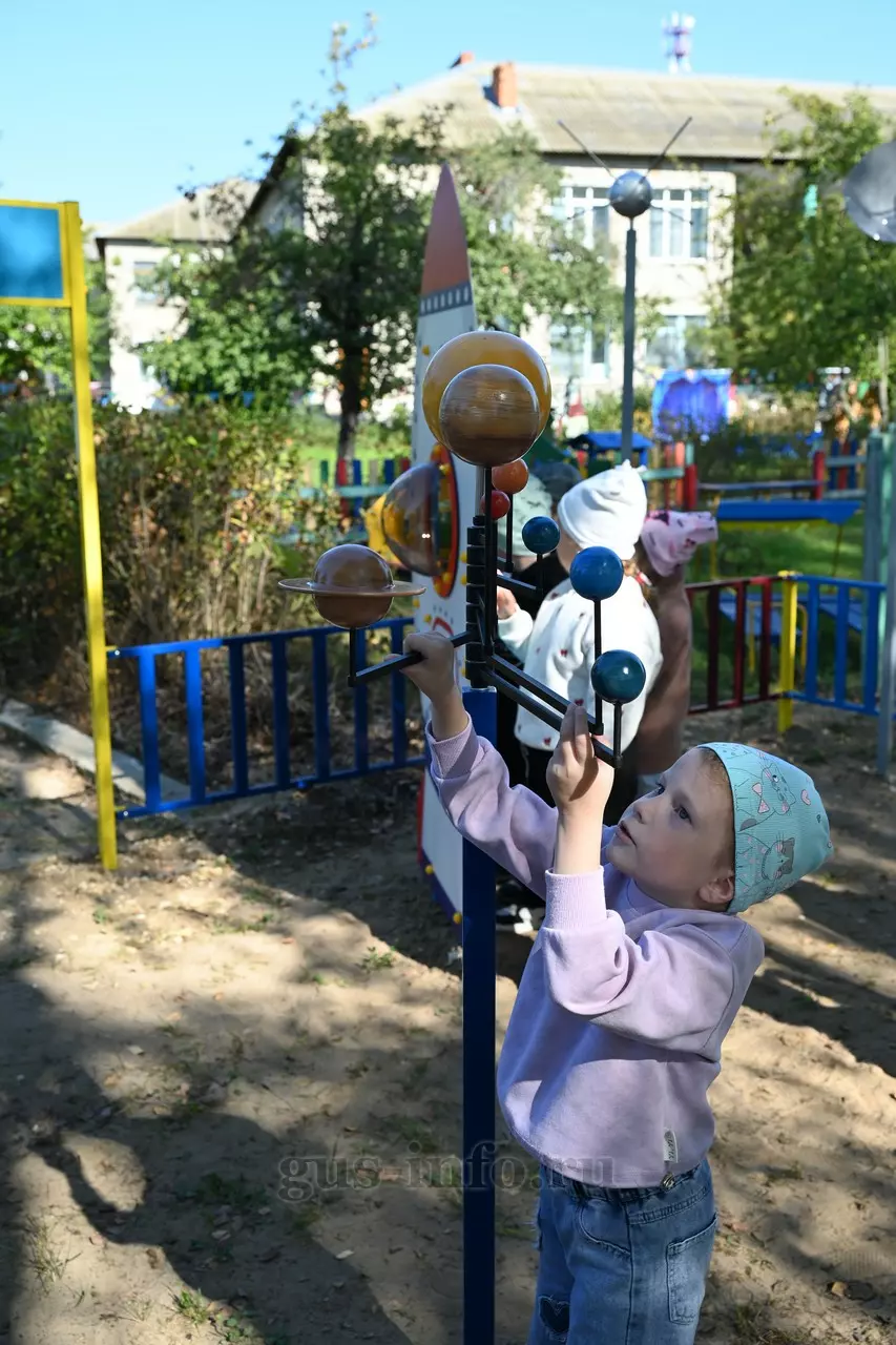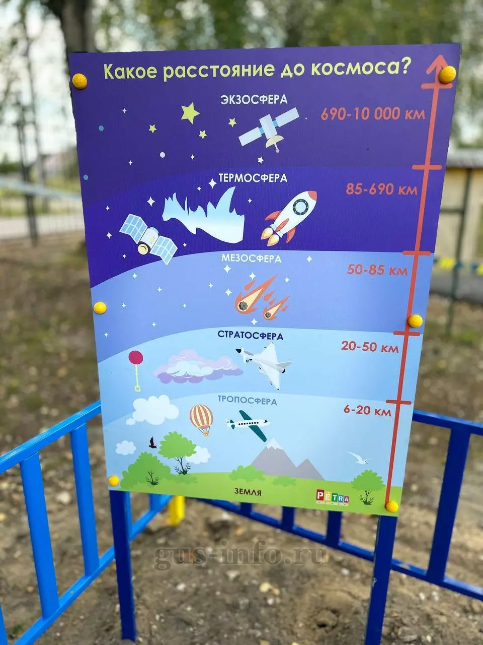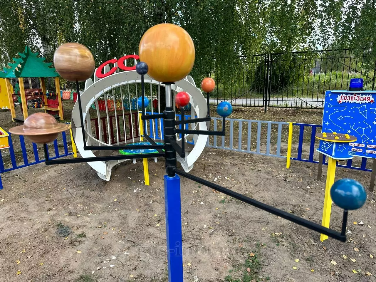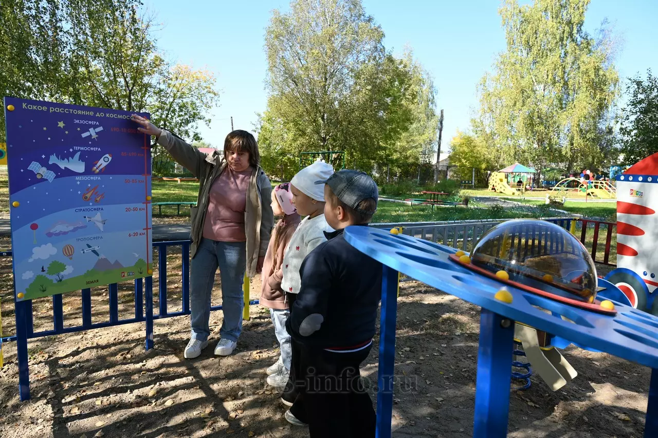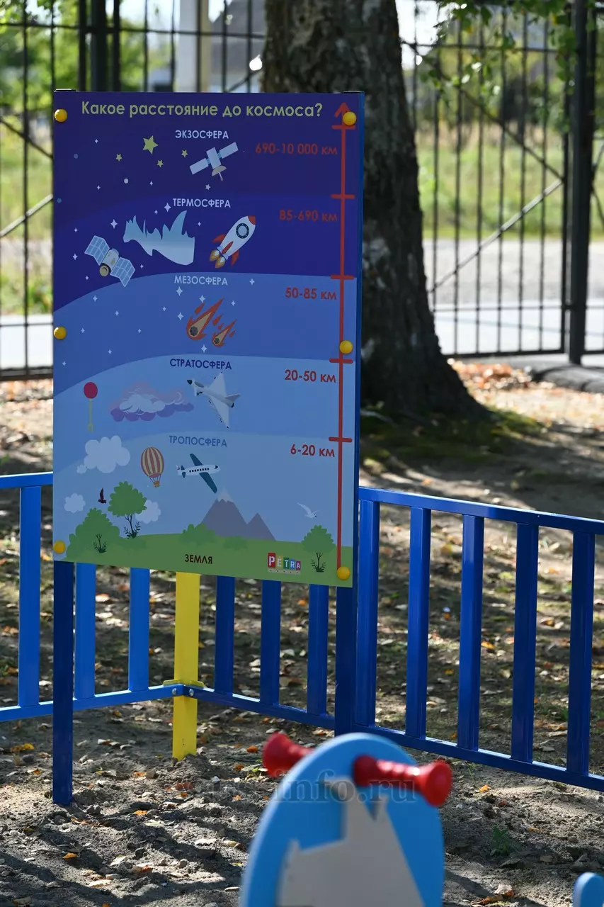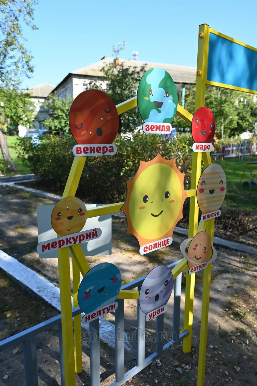 Интерактивная площадка направлена на развитие уличного пространства детского сада, который обслуживает более 250 детей. Она представляет собой комплекс, в состав которого входят красочные стенды и макеты. С их помощью дошкольники осваивают азы астрономии и получают представление о космическом пространстве.